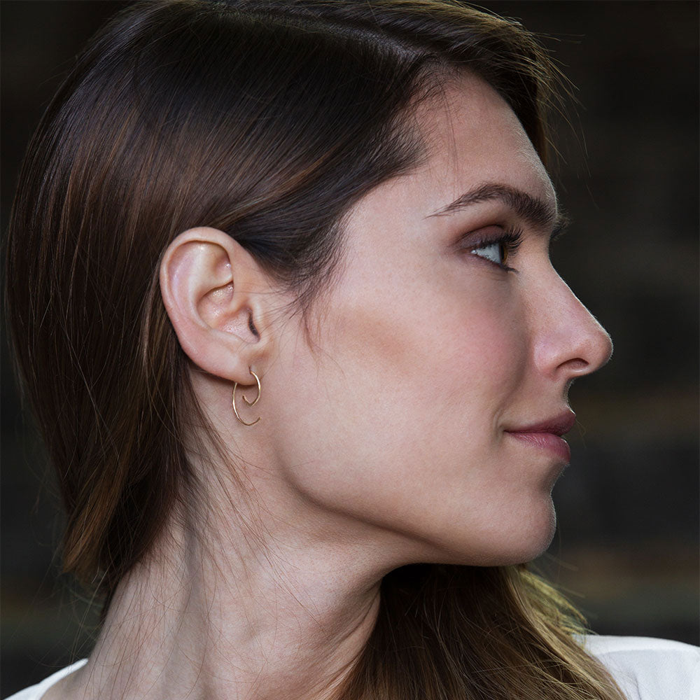 There's a spontaneous energy to the elegantly expressive whirl of our Spiral Hoop Threaders. It's both whimsically gestural while never losing its sense of measured composure. Simply put, it's curved perfection. It's available in three classic versions (solid sterling silver, 14-karat gold, or rose gold) to expand your signature style. Wear it solo or as part of an EVD ensemble–you'll soon discover that this core collection piece of wearable art is as dependable as signing on the dotted line. Proudly handmade by Elke in NYC.