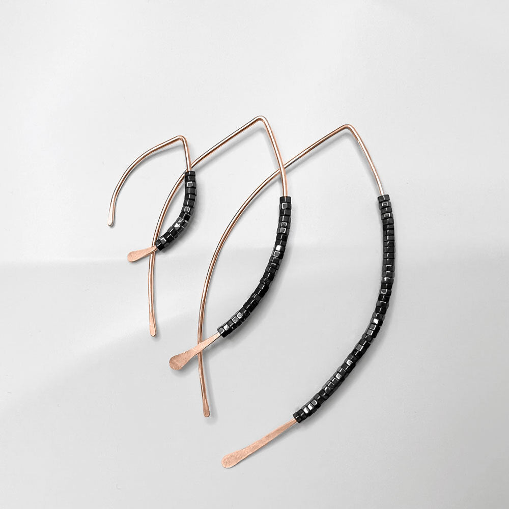 Materials: Hematite. Available in 14K Rose Gold-fill or Solid 14K Rose Gold.