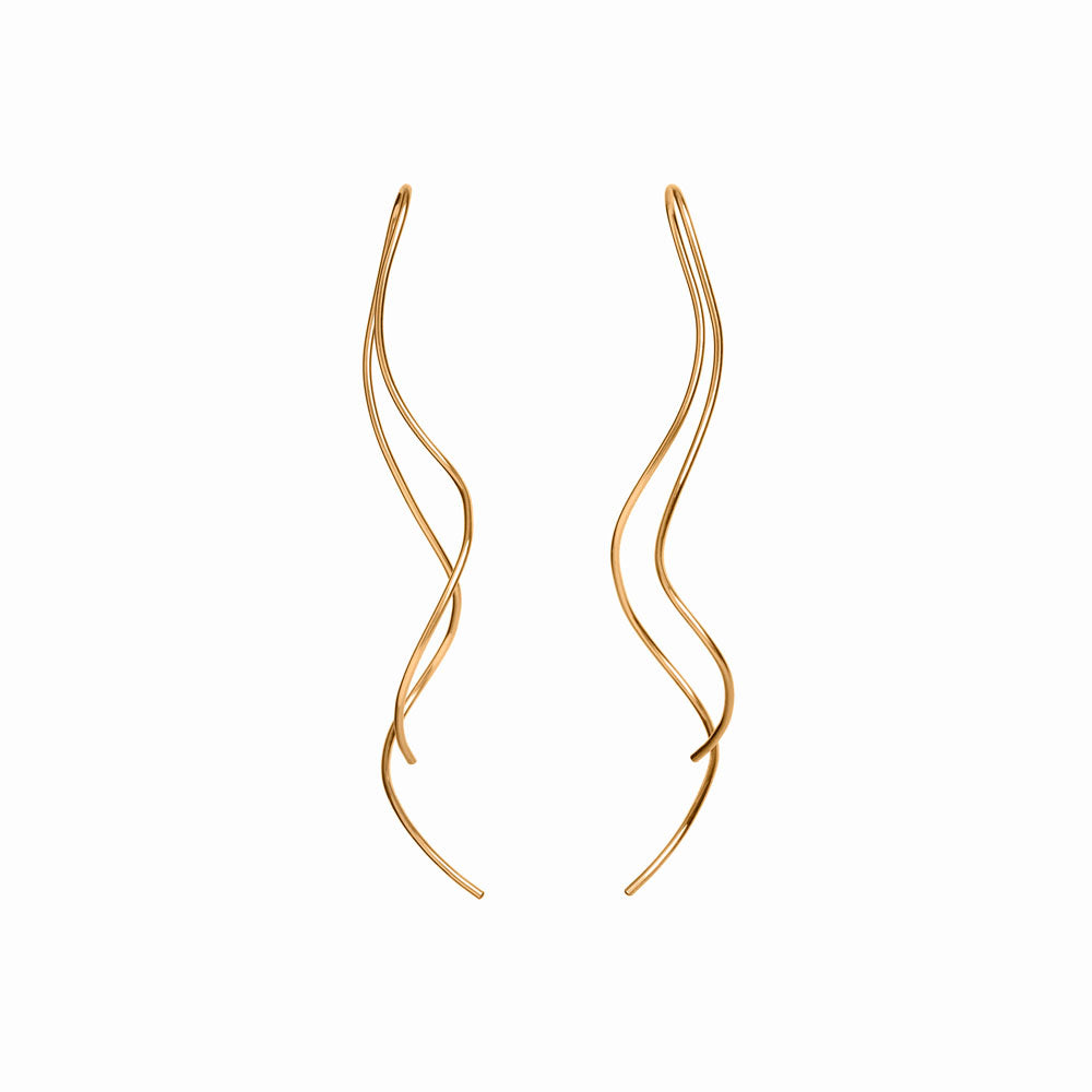 Organic tendrils in soft, descending lines give these threaders a flirty, improvisational flair. Designed to capture light and attention in equal measures, it's polished to a mirror-like finish, exuding poise and confidence. More than a staple, this core collection fave is wearable art that offers unlimited possibilities. There's a version (or versions) perfect for you. Go for the long if you want to extend the scale. And whether you choose solid sterling silver, 14-karat gold, or rose gold, there's a tone of expression for your every look. Proudly handmade by Elke in NYC.