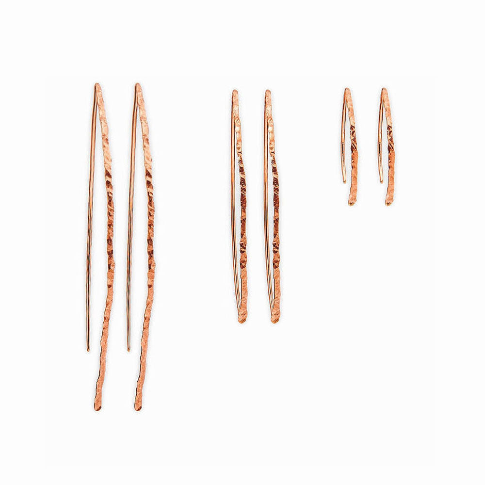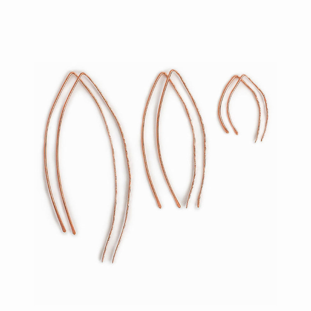 A literal wrinkle on our classic wishbone threader, a hand-hammered finish adds depth and texture, resulting in a faceted dimensionality that bends light and subtly commands attention. You won't have to wish for options because our Rose Gold Wishbone Threader comes in three sizes and three solid metals (sterling silver, 14-karat gold, and rose gold) for a wide spectrum of tonal expressions and scales. Our core collection is all about modular minimalism with maximum possibilities–so whether you wear it solo or as part of an EVD ensemble–it's a dream come true. Proudly made by Elke in NYC.