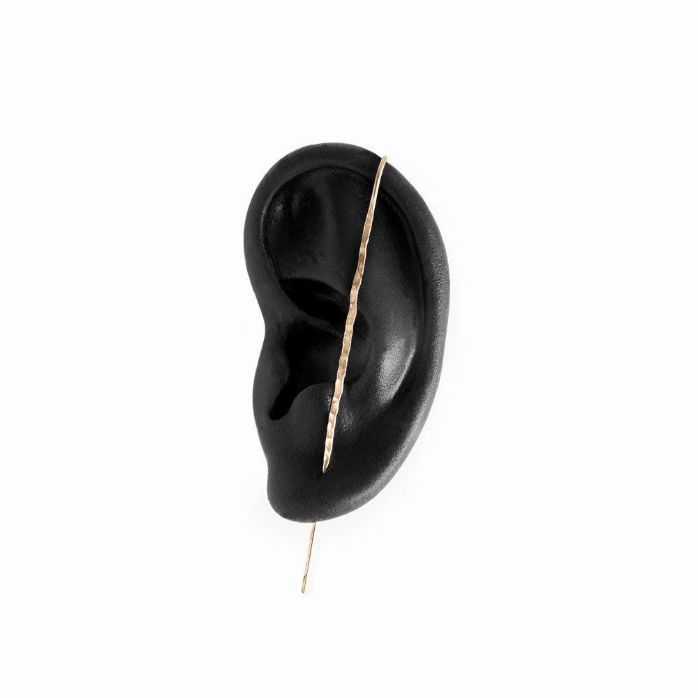 There’s nothing like a dramatic line to change the landscape of your look. That’s where our Silver Landscape Ear Pin comes in. Slim and elegant, the hand-hammered texture takes things to the edge, dramatically blazing its light-filled territory across your ear. A Core Collection favorite, this sculptural and versatile wearable art can stand alone or harmonize with other piercings and ear cuffs. Proudly crafted in solid 14K Gold or 14K Gold fill by Elke in NYC.