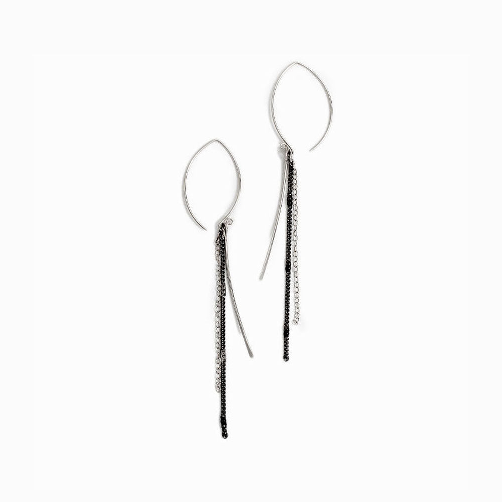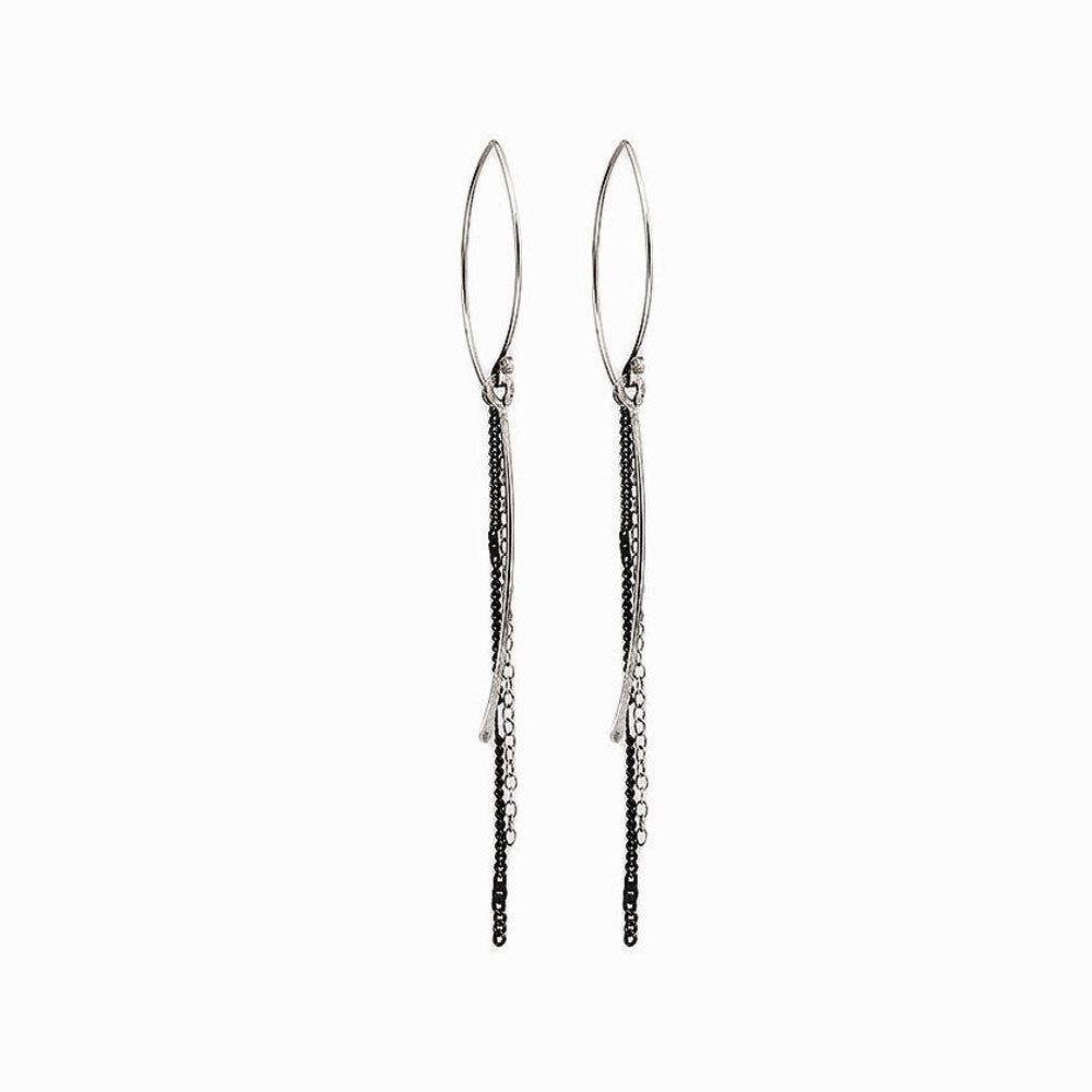 Our Ripple Chain Dangle Earrings are all about sensual curves, slinky movement, and the subtle dance of moonlight. Muted oxidized beads intermixed with a lithe silver chain both play with the soft curves and reflective beauty of a highly-polished solid sterling arch. Light and dark undulate in a delicate balance in an understated yet striking, minimalist design. Proudly handmade by Elke in NYC out of solid .925 silver. Custom lengths are available.