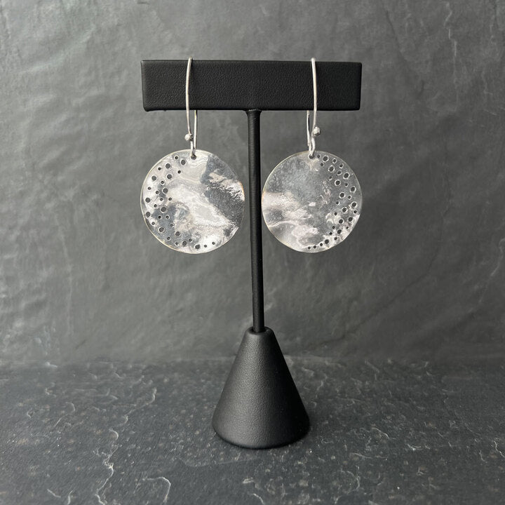 Shadow and light. Sun and moon. Bold and understated. Our Eclipse collection captures the yin-yang of opposites in balance. Our Silver Cresent Earrings have a gravity that pulls you in. Medallions of luminous silver polished to a lustrous finish. The lunar theme continues with punctuations of craters, adding depth and interest. The thin, effortless-to-wear ear hooks complete the weightless effect. Proudly crafted and detailed by Elke out of .925 silver in NYC.