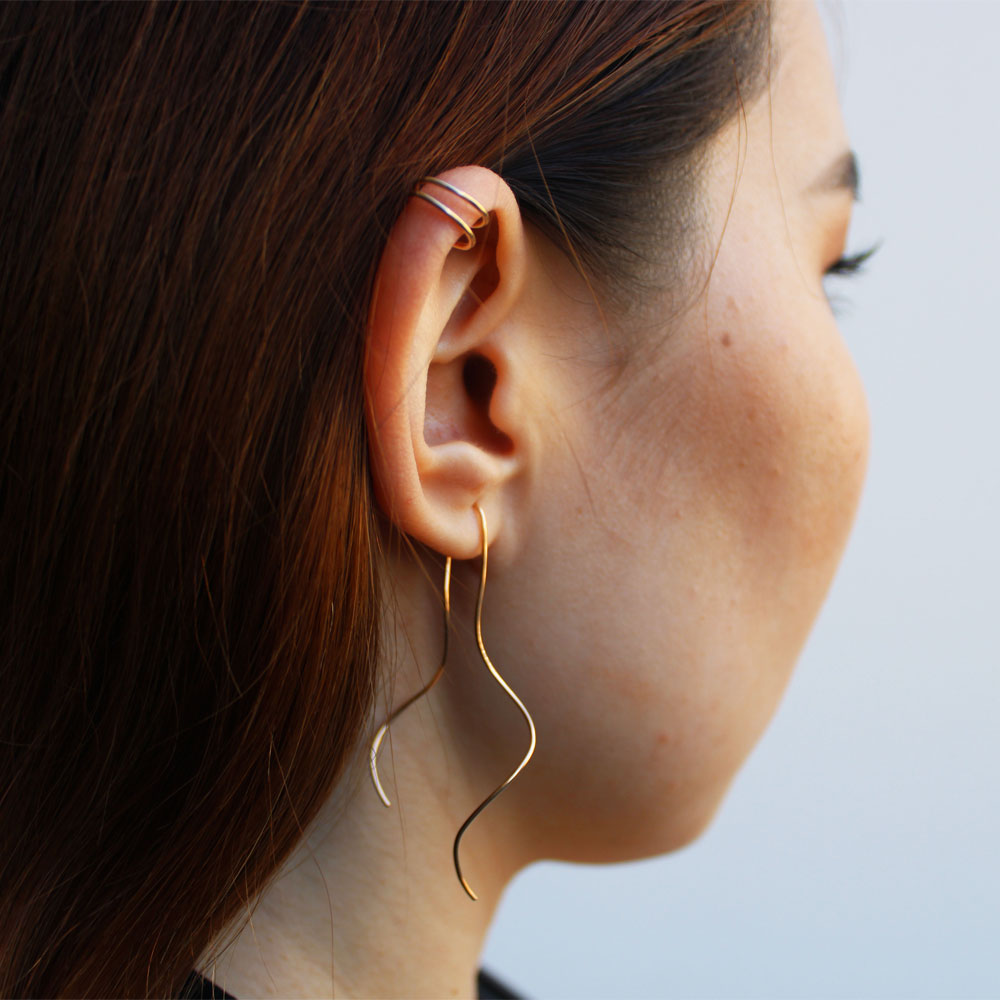 Organic tendrils in soft, descending lines give these threaders a flirty, improvisational flair. Designed to capture light and attention in equal measures, it's polished to a mirror-like finish, exuding poise and confidence. More than a staple, this core collection fave is wearable art that offers unlimited possibilities. There's a version (or versions) perfect for you. Go for the long if you want to extend the scale. And whether you choose solid sterling silver, 14-karat gold, or rose gold, there's a tone of expression for your every look. Proudly handmade by Elke in NYC.
