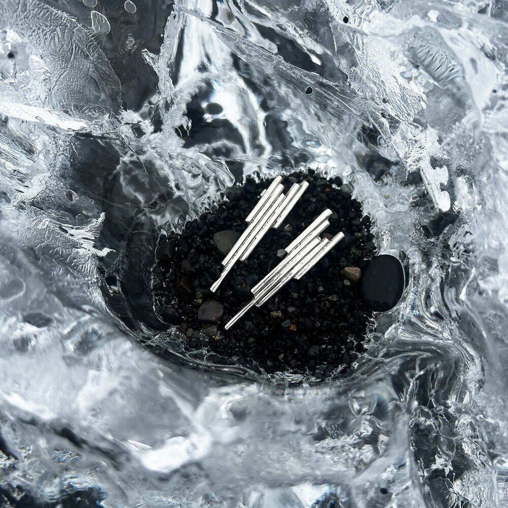 Inspired by the towering basalt columns of Iceland's Vik Beach, these offset columns of sterling silver capture light and bring drama, creating a sense of movement and weight. Soft curves perfectly balance bold, vertical lines, offering a tantalizing tension. The Basalt Earrings make a monolithic statement that says there's fire underneath the ice. Handcrafted in NYC.