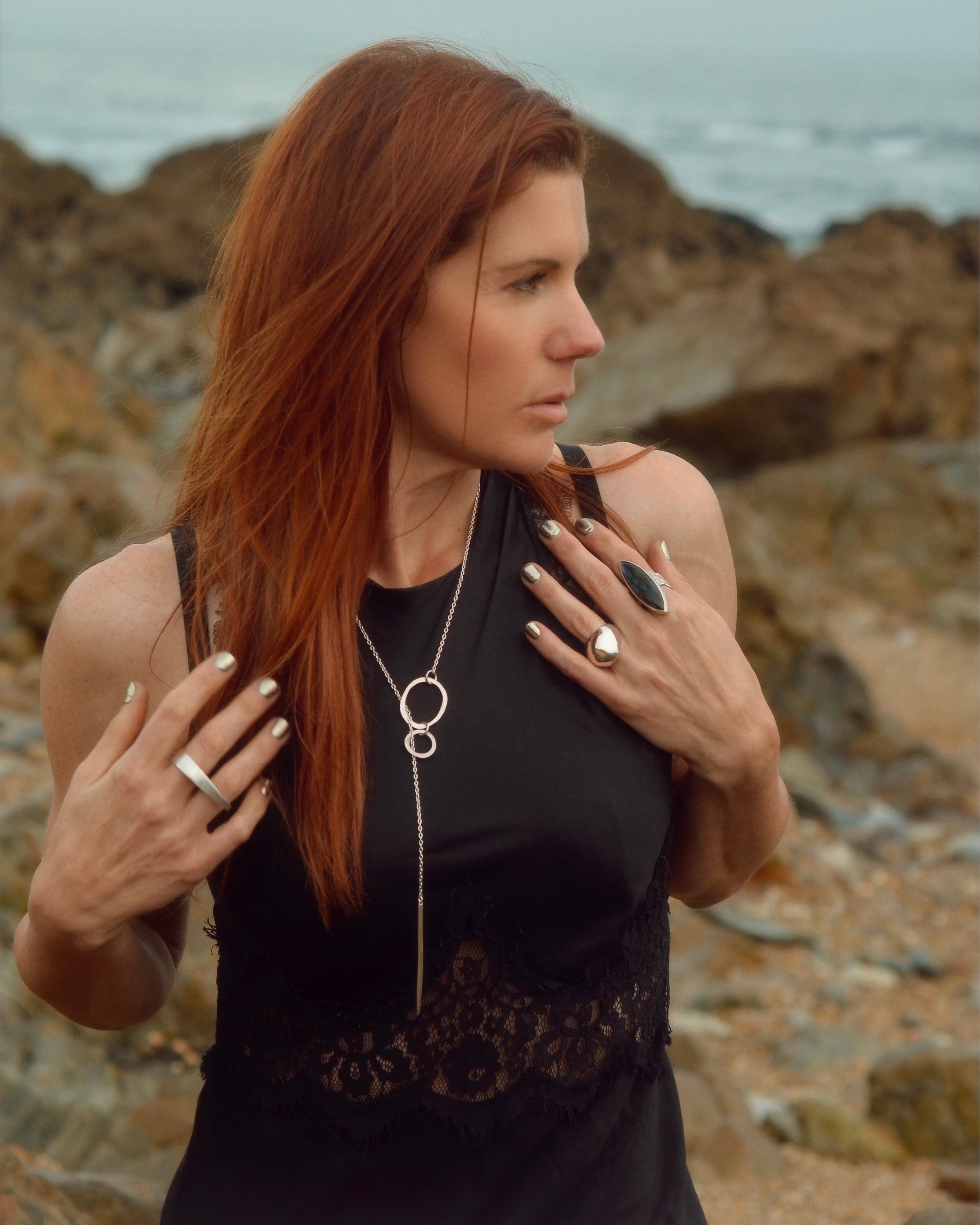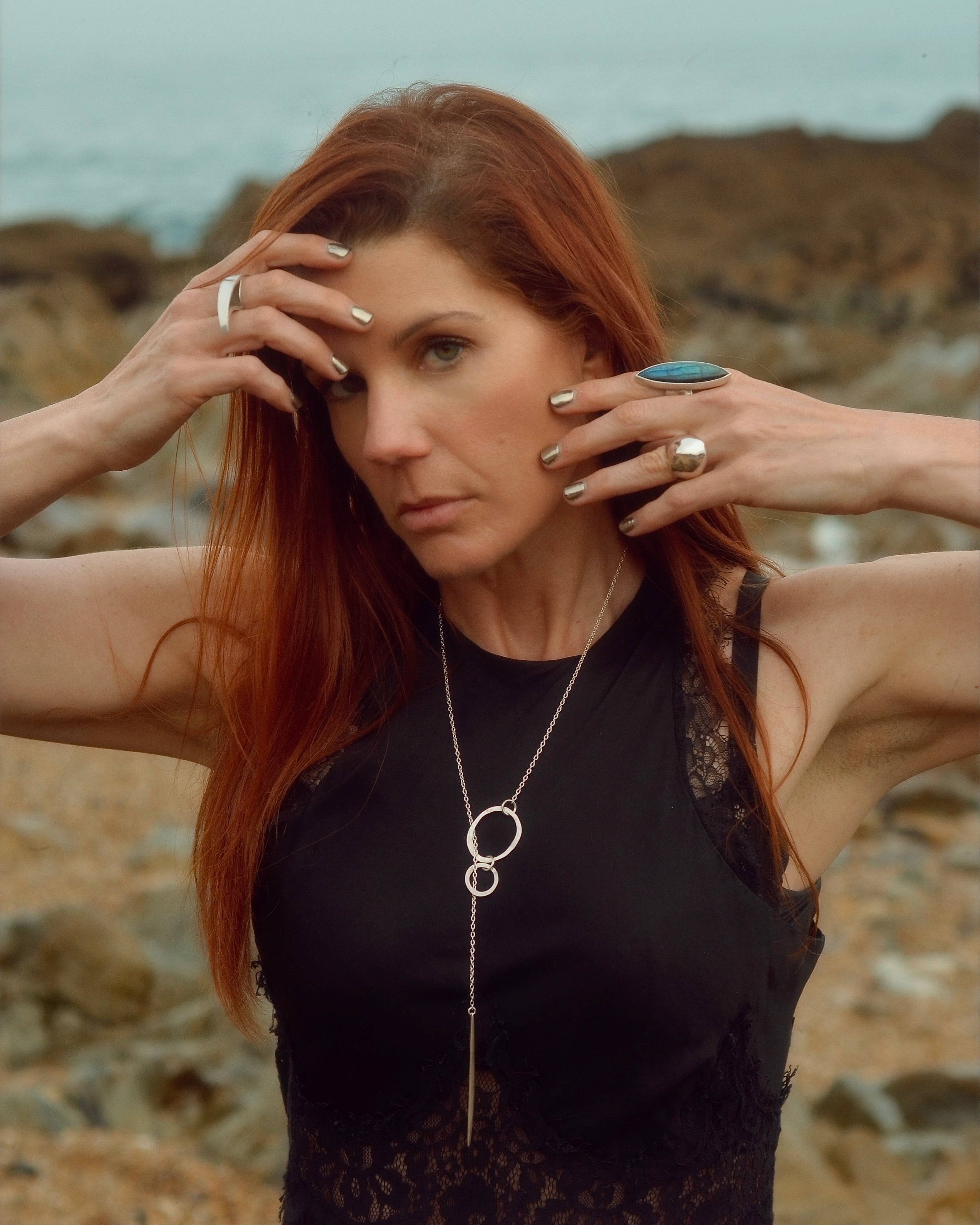 Perfectly balanced poetry on ice. With our Icicle Lariat, Elke evokes the dazzling reflectivity and the quiet calm of the snowiest December. It combines a pair of spherical sisters with a dangling dagger, all in highly polished sterling. A slinky chain provides the thread that connects them all in an understated equilibrium. The result is a definitive composition of minimalist cool. Made by Elke in NYC out of solid .925 hand-polished silver.