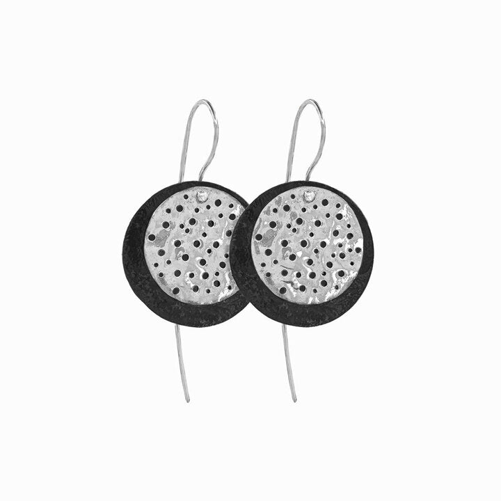 The Basalt Stud Earrings were born from Elke's travels to Iceland's Vik Beach, where dramatic rock columns emerge from black sand beaches. Sterling silver towers form a seductive, shimmering stairway, leading light and eyes in your direction. Who says delicate scales can't make bold statements? Handcrafted in NYC.