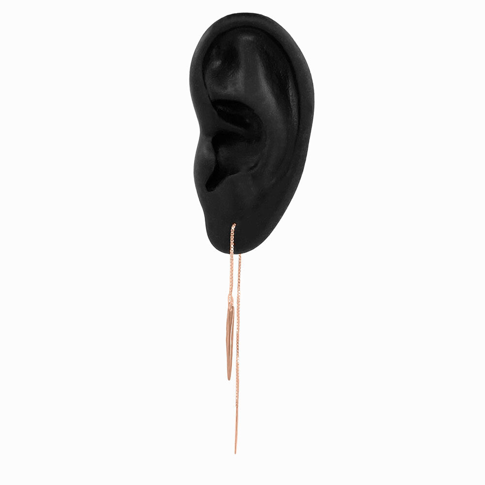A rosy dagger of ice hangs in the balance, held by a slinky chain of 14K Rose Gold fill. Our Rose Gold Icicle Chain Threader Earrings inject a poetic touch of icy suspense into your winter tale. Minimal yet unforgettable, it's a strikingly cool composition that won't leave you hanging. Available in four distinctive hues, there's one for every tonal expression. Dazzling sterling for a highly polished appeal. Oxidized sterling for a more gothy mood. Add the tension of contrast with warm, 14k gold fill. Or choose a more feminine take with the subtle pinkish hues of 14k rose gold fill. Proudly made by Elke in NYC.