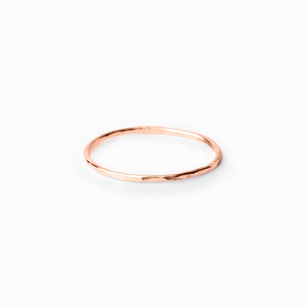 Thin and light but with a hand-hammered texture to create depth and intrigue, three is most certainly the magic number when it comes to our Stacking Rings. Shown here in 14K Rose Gold fill, this staple of our Core Collection gives you the maximum amount of options in a minimalist style. Whether stacked for impact, as a simple soloist, spread out across your fingers or as a midi, this trio will work overtime in your wardrobe. Combined with other Stacking Ring metals, the options multiply exponentially. As always, proudly hand-made by Elke in NYC. For varying sizes or metals, please specify in the notes in the cart.