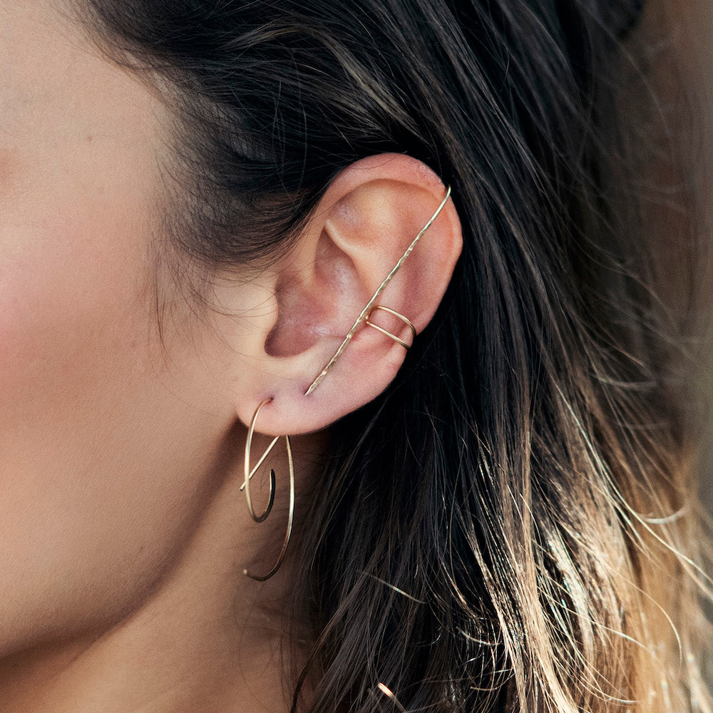 Style is about the small details that make outsized differences. Whispy, gestural curves. The balance of essentialist design. The slightest glint of light. The small details of our Minimal Ear Cuff seduce the eye, capture longer looks, and tell the world you have a lot more going on. Whether you choose the mirror-like finish of .925 solid silver, the classic warmth of gold, or the feminine hues of rose gold (both in solid 14 carats), this wearable art piece from our Core Collection will work its wonders on its own or paired with other EVD selections. No piercing needed. Proudly hand-made by Elke in NYC.